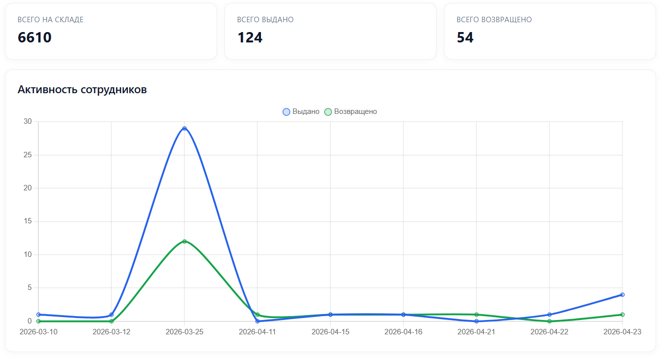 Больше никаких просроченных сроков и утерь. Система берет на себя контроль оборота СИЗ: фиксируйте каждое движение инвентаря от склада до работника и обратно. Автоматические уведомления и четкая история операций помогут соблюдать нормы безопасности без лишних усилий..
